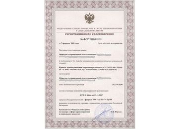 Регистрационное удостоверение Минздравсоцразвития
