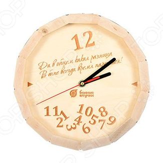 Часы для бани Банные штучки В бане всегда время париться! специальные часы из натурального дерева, которые необходимо иметь в бане и сауне. Часы практичны и долговечны в использовании, не боятся воздействия пара, влаги и высоких температур. Отлично впишутся в интерьер, выглядят просто и со вкусом и оснащены часовой, минутной и секундной стрелками. Корпус из натурального дерева. Механизм из пластика и металла. Оригинальный дизайн дополнят интерьер. Размер 27х8 см. None Возможен самовывоз. Есть доставка.