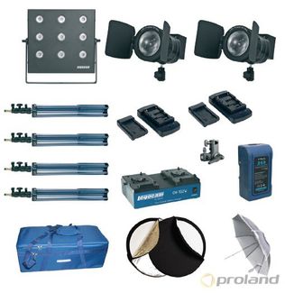 Состав комплекта: Logocam LED Light 80 — 1шт. Logocam LED-Fresnel 20 ENG — 2шт. Комплект отражателей 80 5 в 1 – 1 шт. Зонт 80 см 2-сторонний. серебро/белый 1 шт. Адап... None