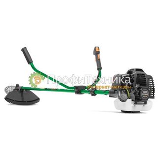 Двигатель 2-х тактный, модель Mitsubishi TB43, мощность двигателя 1.4 кВт/ 1.9 л.с., рабочий объем цилиндра 42.7 см3, рукоятка T-образная, штанга прямая, диаметр лески 3.0 мм, емкость топливного бака 0.9 л, в комплекте: триммерная головка, нож, ранцевая о... None