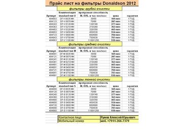 Гарантия 1 год. прямые поставки из Германии. Компания ЗАО Барренс является прямым дилером фирмы Дональдсон в РФ На сегодняшний день фильтры Дональдсон являются мировым лидером в поставке фильтровальных систем и комплектующих. Фильтры Дональдсон находят своё применение на промышленном рынке и рынке дизельных двигателей, включая очистку воздуха в производственном помещении, очистку сжатого воздуха и газа, удаление пыли и дыма, производство электроэнергии, фильтрацию дисководов, внедорожное оборудование и грузовой транспорт. Сервисные инженеры нашей компании осуществляют сервисное обслуживание и ремонт, поставляемого оборудования. Компания ЗАО Барренс обладает всеми необходимыми сертификатами и разрешениями.