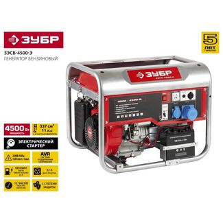 - ЗУБР Бензиновый генератор ЗУБР ЗЭСБ-4500-Э по выгодной цене 43 690 р. руб.;