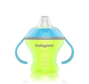 Поильник-непроливайка BabyOno Natural nursing салатовый с голубыми ручками 180 мл поможет малышу освоить навык самостоятельного питья и перейти от питья из бутылочки к питью из чашки. Мягкий силиконовый носик не повредит нежные десна и первые зубки малыша, а его конструкция позволяет создать контролируемый поток: жидкость вытекает только при сжатии или сосании. Поильник имеет зауженную форму, удобную для детских ладошек, и прорезиненные ручки, которые не скользят и надежно фиксируются под насадкой. Крышка поможет сохранить носик в чистоте. Минимальная сумма заказа 1500 руб. Возможен самовывоз. Есть доставка.
