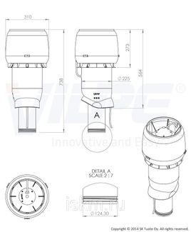 VILPE® E190Р/125/500 вентилятор представляет собой трубу с колпаком, в который встроен вентилятор. Труба теплоизолирована для предотвращения образования конденсата в трубе. Внутренняя труба изготовлена из перфорированной оцинкованной стали и имеет теплоизоляцию толщиной 50 мм. Длина внутренней трубы позволяет вставить ее в подводимый воздуховод на длину 300 мм. Это облегчает вертикальный монтаж в тесных чердачных помещениях и одновременно делает конструкцию более прочной. Нижний край внутренней трубы имеет резиновый уплотнитель, герметизирующий соединение трубы и воздуховода.
