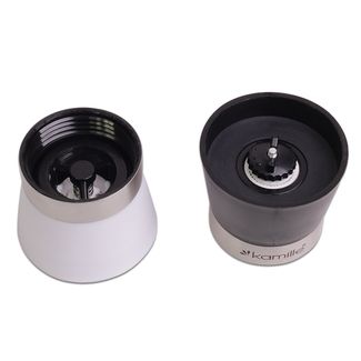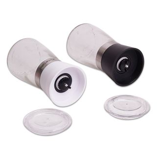 Набор мельниц для специй. Материал: нержавеющая сталь и ударопрочный акрил. Материал механизма: керамика. Цвета: белый, черные. У паковка: цветная картонная коробка 14,514,67,5 см.