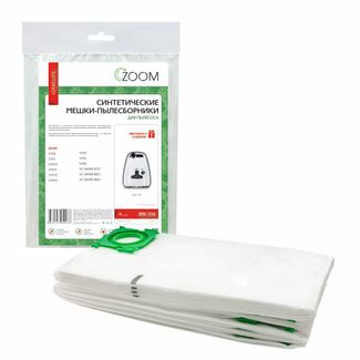 Синтетические мешки пылесборники ZOOM 4 шт. + микрофильтр для пылесоса Bork
