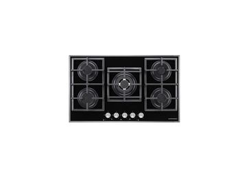 Газовая варочная поверхность стеклокерамическая, ширина 90 см, 5 газовых конфорок, 1 конфорка повышенной мощности, WOK, автоподжиг, газ-контроль, чугунные решетки, цвет черный/рамка FASET. None