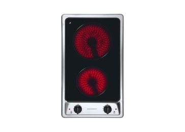 Электрическая независимая варочная поверхность стеклокерамическая, домино, ширина 30 см, 2 зоны ускоренного нагрева HI-Light, механическое управление, 11 уровней мощности, индикаторы остаточного тепла, цвет черный, рамка из нержавеющей стали. None
