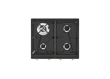 Фронтальная панель управления, 4 газовые горелки, задняя левая повышенной мощности 3,3 кВт, автоматический электроподжиг, газ-контроль, чугунные решетки, крышки горелок эмалированные, 1 никелированная, жиклеры для сжиженного газа в комплекте. None