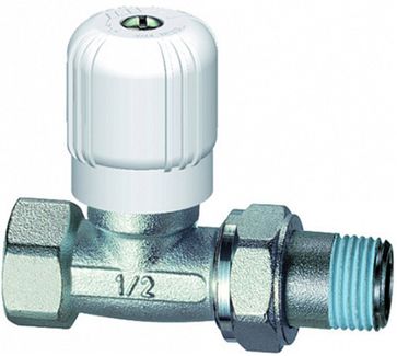 Предназначен для установки желаемой температуры в помещении за счет изменения расхода теплоносителя через отопительный прибор (радиатор, конвектор). Регулирующий вентиль устанавливается на подающей магистрали. Он снабжен пластиковой ручкой, удобной для легкого управления и позволяющей регулировать вручную скорость потока и теплоотдачу радиатора, устанавливать требуемый тепловой режим отопительного прибора. Ручная регулировка производится, начиная с полностью закрытого положения, переводом в открытое положение в соответствии с числом оборотов ручки. Вентиль FAR имеет быстроразъемное соединение, которое обеспечивает легкий и простой монтаж. Уплотнение разъемного соединения изготовлено из фторопласта HPF. Фторопласт HPF под воздействием высокой температуры не теряет эксплуатационные свойства. На штуцере нанесён герметик на водной основе Loctite Dri-Seal 5061 - это позволяет не использовать дополнительных уплотнительных материалов (лента ФУМ, льноволокно и т.п.) при первичном присоединении к отопительному прибору.