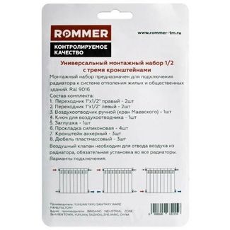 - Монтажный комплект для радиатора Rommer 1 2" с тремя кронштейнами в каталоге Радиаторы масляные в России;