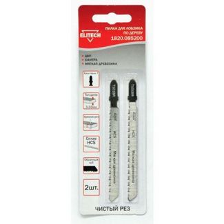 Пилка для лобзика (полотно пильное) ELITECH 1820.085200. Зубья позволяют выполнять чистовой обратный рез (T101BR).