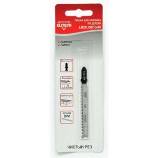 Пилка для лобзика (полотно пильное) ELITECH 1820.085500. Зубья позволяют выполнять чистый пропил (T101BIF).