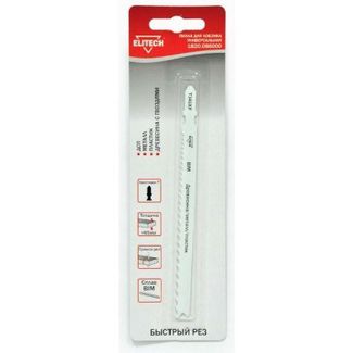 Пилка для лобзика (полотно пильное) ELITECH 1820.086000. Зубья позволяют выполнять быстрый пропил (T345XF).