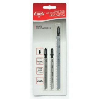 Набор из 3-х пилок для лобзика ELITECH 1820.086700. В наборе:• T344D, 135 мм - 1 шт.;• T101B, 75 мм, 2 шт.