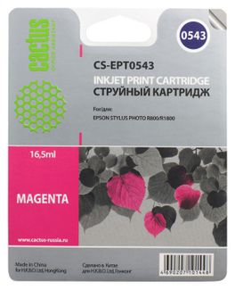 - Картридж струйный Cactus CS-EPT0543 пурпурный для Epson Stylus Photo R800 R1800 (16.2мл) по выгодной цене 218 р. руб.;
