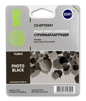 - Картридж струйный Cactus CS-EPT0591 черный для Epson Stylus Photo R2400 (14.8мл) по выгодной цене 197 р. руб.;