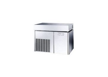 Характеристики. Длина: 900мм; Ширина: 588мм; Высота: 705мм; Мощность: 2100Вт; вес: 137кг. Производит чешуйчатый лед. Производительность 320 кг/сутки. Выполнен из нержавеющей стали. Не оснащен накопителем для льда. Необходим бункер для льда. (BIN 350, BIN None