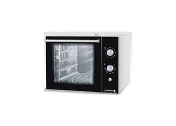 Конвекционная печь Garbin 44PE VAP с пароувлажнением, полностью из нержавеющей стали, на 4 противня 600х400 (в комплекте), расстояние между листами 80 мм. 2 вентилятора, с реверсом. Дверца открывается вниз. Инжекторный способ парообразования. Электронная None