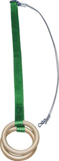 Кольца гимнастические ПРОФ. Выполнены из высококачественной фанеры. Размеры: наружный ø колец - 235 мм; толщина колец - 35 мм;длина подвеса (строп и троса) - 3000 мм. Стропа выполнена из нейлона шириной 50 мм, трос стальной ø-4 мм в ПВХ оплетке. Вес: 1,5 кг. None Есть доставка.