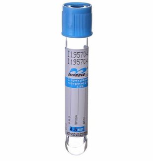 - Пробирка вакуумная ЦИТРАТ Na 3,8% 4,5 мл. пластик (голубая крышка) по выгодной цене 14 р. руб.;
