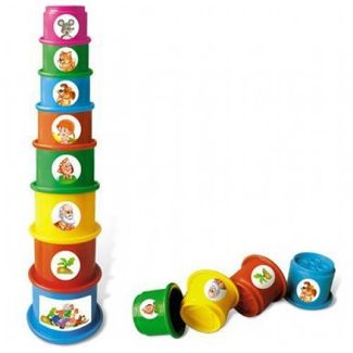 Стаканчики с изображением героев сказки, которые можно сложить в пирамидку и рассказать по ним сказку. Малыша порадуют яркие цвета, а построение пирамидки поможет развить его логическое мышление.