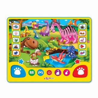Этот говорящий планшетик - прекрасный подарок для любознательный малышей. Нажимая на яркие картинки, ребёнок познакомится с удивительными динозаврами, узнает о них много интересного, послушает голоса и звуки.