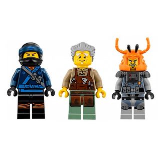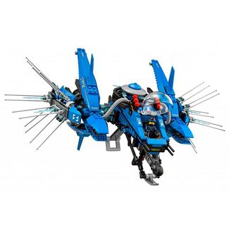 Представляем вашему вниманию новинку августа 2017 года, выпущенную специально к выходу нового полнометражного анимационного фильма от компании Лего – «The LEGO Ninjago Movie», премьера которого ожидается уже совсем скоро, в сентябре 2017 года. Мультфильм расскажет нам о противостоянии героев ниндзя силам зла в лице четырехрукого злодея Гармадона и его многочисленной армии акул. Ниндзя ждут новые приключения, сражения и, мы уверены, новые блистательные победы.Набор LEGO Ninjago 70614 Самолёт-молния Джея состоит из 877 деталей и включает 5 минифигурок – это сам Джей (Синий ниндзя Молнии), Эд и Эдна (мирные жители Ниндзяго-города) и три солдата армии акул.Из деталей набора нам предстоит собрать две боевые машины – самолет Джея и механического краба акульей армии. Летательный аппарат ниндзя строится, преимущественно, из деталей насыщенного синего цвета, его массивные крылья имеют размах 44 см, утыканы шипами и молниями. Кабина пилота открывается, внутрь можно посадить минифигурку. В верхней части корпуса установлены пружинные шутеры, а также вращающийся механизм, извергающий молнии. Боевая машина акульей армии, выполненная в виде огромного краба оборудована мощной подвижной клешней для захвата противника, а также шестизарядной пушкой, выстреливающей при вращении. В центральной части имеется кабина управления. None