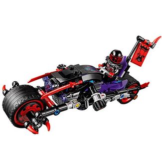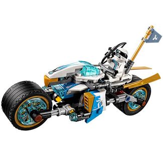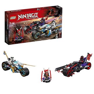 Отважному Зейну срочно нужна помощь! Он гонится за союзником сыновей Гармадона Мистером Э., который мчит на крутом невероятно быстром байке. Ниндзя важно добраться до маски возмездия раньше, чем злодей, чтобы помешать ему использовать силу «Торс демона» и, конечно, две дополнительные руки.Зейн уже развернул шипометы, но Мистер Э. не так-то прост, у него есть свое оружие, поэтому ниндзя должен быть осторожен и уклоняться от шипометов Они-Байка. Пора пустить в ход дрон, он будет атаковать с воздуха.Мотобайк Зейна выполнен в белом цвете в тон к одежде любимого героя, также у него голубые и золотые детали. Игрушка оснащена огромными, мощными, подвижными колесами, благодаря чему байк может развивать большую скорость. Минифигурка отлично помещается на сидение. У Зейна белый костюм с личным логотипом на груди, за спиной у него стрелы, а на голове маска ниндзя и черная повязка.Не менее крутой байк у Мистера Э., он выглядит очень зловеще и мощно. Основные цвета транспортного средства: черный, фиолетовый и красный. Корпус сделан в тон к костюму злодея, хорошо детализирован. К примеру, за сидением находится флаг героя на длинном флагштоке, а диски украшены крупными шипами, колеса вращаются. Сам персонаж одет в черный костюм с уникальным принтом на груди, у него красные перчатки и шлем с подвижным забралом на голове.Маска возмездия тоже выглядит впечатляюще, она помещается на специальную подставку, с двух сторон расположены красные катаны. Также минифигурку можно извлечь из подставки и присоединить в ней нижнюю часть корпуса, где есть еще две дополнительные руки и ноги. Минифигурка одета в черный костюм с этническим принтом на груди и красную маску с белыми рогами.В наборе:308 деталей;3 минифигурки;Различные аксессуары. None