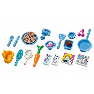 Новинка января 2017 года – конструктор LEGO Friends 41314 Stephanies House Дом Стефани.Набор состоит из 622 деталей и включает минифигурки девочки Стефани, мамы Алисии, папы Джеймса, кролика Чили.Стефани живет в красивом двухэтажном доме с мамой Алисией, папой Джеймсом и кроликом Чили. Сегодня у Стефани праздник, и она пригласила подруг. Девочки любят готовить и сладкое, поэтому Стефани испекла для гостей ароматные кексы. Собрала цветы на клумбе и поставила букет в вазу у лестницы на второй этаж. Помогла папе Джеймсу пропылесосить пол в гостиной и выполнила с мамой Алисией домашнюю работу на компьютере. Закончив с делами, Стефани причесалась в своей комнате и спустилась вниз покормить кролика Чили, живущего на улице в своем маленьком домике. Осталось дождаться веселых подруг на качелях и поиграть с ними в теннис!В набор входит:622 детали;-минифигурка - девочка Стефани;-минифигурка - мама Алисия;-минифигурка - папа Джеймс;-минифигурка - кролик Чили;-аксессуары: пылесос, телевизор, корзинка, теннисная ракетка, морковь, набор кухонной посуды т.д.Что можно собрать:-двухэтажный дом Стефани с балконом;-входная группа дома Стефани с качелями, открывающимися дверьми, окнами, ставнями;-внутренняя зона дома Стефани с прихожей, кухней, гостиной на первом этаже, кабинетом, спальней и туалетной комнатой на -втором этаже;-клумба и почтовый ящик;-домик кролика Чили. None