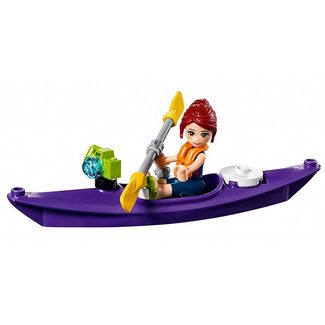 В августе 2017 года коллекция конструкторов для девочек серии Лего Подружки пополнилась отличным набором, посвященным летнему отдыху на воде – LEGO Friends 41315 Сёрф-станция. Набор состоит из 186 деталей, включая элементы для сборки одной минифигурки. Героиней этого набора стала Мия. Кроме того, в комплект входит фигурка симпатичного морского котика.Мия – самая рыжеволосая и самая спортивная девушка из пятерки подружек Хартлейк Сити. Она обожает верховую езду и занимается греблей. В этот раз Мия решила посетить магазинчик на побережье, специализирующийся на товарах для серфинга. О том, что сёрф-шоп располагается на берегу нам говорят пластины песочного и голубого цветов у основания здания. На вывеске магазина красуются тропические цветы и доски для серфинга, а на крыше установлен декоративный элемент в виде вздыбленной морской волны. К входной двери ведут ступени и небольшой мостик, сама дверь, как и все витрины – прозрачные. Слева от входа на воде размещены два предупредительных буйка с яркими флажками. Справа от входа не песке разложен шезлонг для отдыха, рядом стоит кулер с холодной и горячей водой. Внутри магазинчика располагается прилавок с кассовым аппаратом, стойки и полки с товарами. Здесь можно купить солнцезащитные очки, очки для подводного плавания, фотоаппарат для подводной съемки, веер, кремы и лосьоны для защиты от солнца, ласты, спасательный жилет и даже роликовые коньки.Помимо основной постройки из набора деталей вы сможете собрать еще два миниатюрных сооружения – это небольшая скала, выступающая над поверхностью моря, на ней, уютно расположившись, греется на солнышке морской котик; а также стойка с досками для серфинга.И, наконец, последний элемент конструктора – это одноместная байдарка Мии. Она оснащена двойным веслом для гребли, а на носу установлен водоустойчивый фотоаппарат.Итого в набор из 168 деталей входит:- 1 минифигурка;- 1 фигурка морского котика;- Здание магазинчика для любителей отдыха на воде;- Фрагмент скалы;- Байдарка;- Множество до