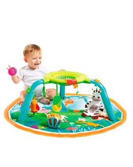 Tiny Love Я расту! состоит их мягконабивного коврика 90х90 см, столика-дуги с электронной музыкальной игрой и множества развивающих навесных игрушек. Для стимуляции развития малыша предусмотрено три режима: лёжа - начиная с рождения, сидя и стоя. Для работы необходимы 3 батарейки типа ААА. Наличные, Visa/MasterCard, Яндекс.Деньги, WebMoney Возможен самовывоз. Есть доставка.