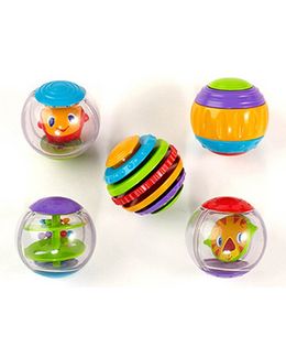 Развивающая игрушка Bright Starts Забавные шарики развивает логику и моторику ребенка, помогает в тренировке тактильных ощущений и освоении понятий причинно-следственных связей. В комплекте 5 разнофактурных шариков: 2 трещащих, в одном шарике прыгает еще один шарик в виде зверушки, в другом крутится мордочка тигренка, а в пятом имеется лабиринт, сквозь которого падают разноцветные горошины. Минимальная сумма заказа 1500 руб. Возможен самовывоз. Есть доставка.