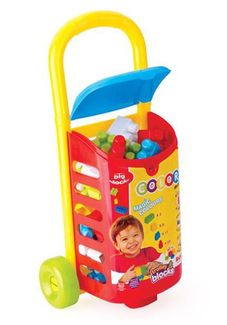 В небольшой пластиковой тележки на двух колесиках находится 42 детали пластикового блочного конструктора для малышей Dolu. У тележки имеется крышка и длинная ручка, а детали конструктора крупные и хорошо держатся между собой. Игрушка изготовлена из прочного и безопасного для здоровья пластика. Минимальная сумма заказа 1500 руб. Возможен самовывоз. Есть доставка.
