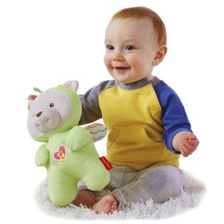 Плюшевая игрушка для сна Мечты о бабочках Fisher Price очень милая. Поверхность приятная на ощупь, бархатистая. Есдли надавить на животик, то можно услышать приятную музыку.