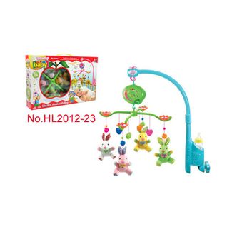 HENGLEI Музыкальный мобиль ЗАЙКИс батарей(12 шт.кор.),мягк.игр.держ.для бутылки,муз.блок с рег.звука