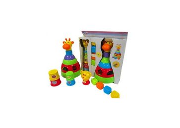 Игровой набор пирамидки - этот набор из двух пирамидок, одна из которых - Многофункциональная пирамидка-жираф Simba Baby, вторая - пирамидка из пяти стаканчиков с цифрами и головой медведя, так же в набор входят бусы абаку из четырех сегментов. None