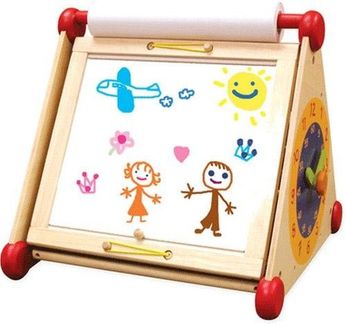 Развивающий центр I m Toy 7 в 1 оборудован дощечками с алфавитом, сортером-лабиринтом, счетами, часами, доской доя мелков, доской для маркеров и рулоном бумаги, который крепится к доске-мольберту. Цена со скидкой действует до 31 мая Возможен самовывоз. Есть доставка.