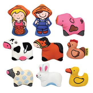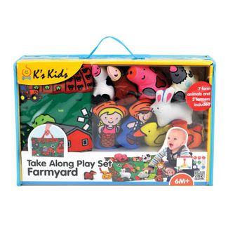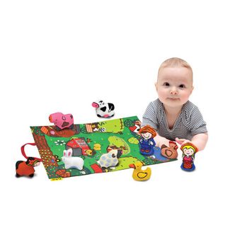 Игровое поле-подстилка легко превращается в сумку для хранения игрушек. В набор входит 7 мягких животных и 2 фермера. Каждая игрушка - это или погремушка или пищалка. Игрушку можно стирать при температуре 30 С. None