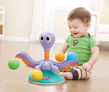 Вращающийся осьминог Little Tikes будет интересен детям с 6 месяцев и старше. Он умеет крутиться, если надавить на его голову и при этом разбрасывает шарики,которые необходимо собрать.