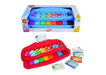 Мое первое пианино Симба Беби - первое пианино Simba Baby совсем простенькое, так что подойдет даже совсем малышам. На пианино восемь разноцветных клавиш. Нажимаем клавишу – слышим звук. В комплект входит карта с песенками, которая поможет сыграть мелодию. Можно выбрать пианино красного или голубого цвета. None