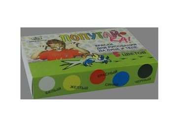 Белый, черный, синий, красный, желтый Краски на водной основе в карандашах. Не текут, смываются водой с мылом, не вызывают алергии. Безопасны для детей от 3-х лет.