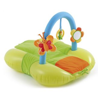 Надувной, яркий красочный коврик с приятным тканевым покрытием, со съемной мягкой дугой, на которой закреплены 3 развивающие игрушки (цветочек-зеркальце, в которое малыш сможет изучать себя более детально, колечко с персонажем Cotoons лягушенком Вабап, которое может служить прорезывателем и бабочка с шуршащими крылышками). Надувной коврик позволяет играть в трех положениях- лежа на спинке, лежа на животике и сидя. В возрасте от 3 месяцев ребенок может лежать на коврике на спинке или животике рассматривать игрушки на дуге, дотрагиваться до них, притягивать к себе и изучать, как только ребенок научится сидеть, примерно к 6-8 месяцев, можно надуть подушку, которая послужит удобной опорой для спинки ребенка и коврик превратится в удобное кресло для малыша.Размер игрушки: 706130 смСтрана происхождения: Китай None