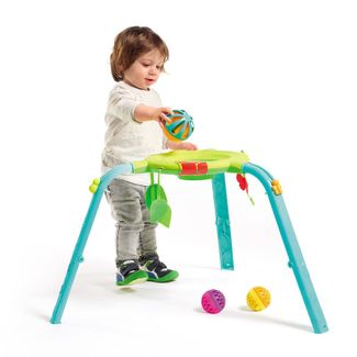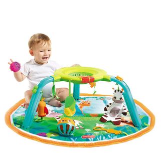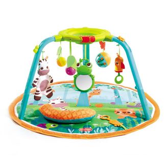 Уникальный развивающий коврик, оснащенный регулирующимися дугами, с помощью которых можно выбрать один из трех режимов для стимуляции развития ребенка и тренировки его грубой и мелкой моторики, начиная с рождения.Режим 1: Лежа - удобная подушка для лежания на животике и большой выбор стимулирующих игрушек, которые помогают увлечь ребенка и продлить время выкладывания на живот, или развлечь его в то время, что он лежит на спине.Режим 2: Сидя - коврик складывается и превращается в развлекательный центр с интерактивной игрой в шарик, которая помогает укреплять навыки мелкой моторики и укрепляет мышцы, необходимые для сидения.Режим 3: Стоя - веселая спиральная игра с шариком занимает стоящего малыша и стимулирует его когнитивное развитие.15 увлекательных функций, включая музыкальную электронную игру с шариком, музыкальную подвеску в виде птицы, шуршащую зебру, мяч с шариками в виде тигра, зеркальце в виде лягушки и многое другое.Инновационная электронная игра с шариком включает в себя мигающие лампочки и музыку (три режима), а также спираль для шариков. None