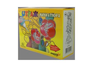 Предлагаем Вашему вниманию уникальный набор «Витраж-миниатюра» для изготовления своими руками небольших витражей, которыми Вы можете украсить свой интерьер. Набор «Витраж-миниатюра» - прекрасный подарок для взрослых и детей от 5-ти лет. Способствует развитию фантазии, усидчивости, аккуратности, мелкой моторики рук, что особенно важно для растущего организма или восстановительной терапии после болезней и травм. Набор состоит из 3-х прозрачных пластиковых заготовок размером 10х15 см с нанесённым объемным контуром будущего витража, рамки из дерева, витражных красок 5-ти цветов и геля с блестками для декорирования. Краски и гель упакованы в мягкие пластиковые флаконы по 25 мл с дозаторами, позволяющими наносить краски на рисунок прямо из флакона. Заготовки для росписи: Розы, бабочка, солнышко