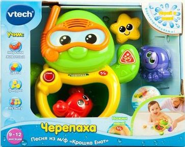 Черепаха VTech - развивающая игрушка для ванны, предназначенная для детей старше 9 месяцев. Знакомит ребенка с морскими животными, названиями цветов и геометрическими фигурами. Цена со скидкой действует до 31 мая Возможен самовывоз. Есть доставка.