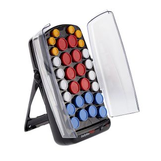 Электробигуди Babyliss BAB3031E популярны не только среди обычных покупателей, но также предпочтение этому бренду отдают и профессиональные стилисты. Ободки с обоих торцов бигуди изолированы от нагрева и позволяют спокойно накручивать прядь, не обжигая пальцы. Складная подставка предназначена для вертикального расположения бокса с бигуди для более комфортной работы. Нагревательный бокс оснащён двухуровневым переключателем нагрева: для интенсивного нагрева электробигуди и для поддержания температуры. Световой датчик, установленный рядом с переключателем известит Вас о готовности электробигуди к укладке волос. Набор профессиональных керамических электробигудей BaByliss PRO BAB3031E Ceramic Professionels состоит из: