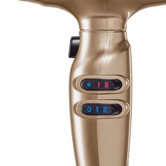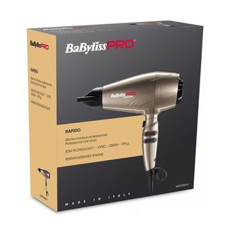 Фен для волос BaByliss PRO Rapido Light Bronze BAB7000IGE - это один из самых легких фенов, весом всего 399 грамм. Фен разработан в тесном сотрудничестве с компанией Ferrari, производителем суперкаров и является мировым лидером в сочетании скорость потока/вес/уровень шума/срок службы. Фен оснащен высокопроизводительным АС мотором с электронным управлением, который обеспечивает выдающиеся характеристики, снижает вибрацию, уровень шума и увеличивающей срок службы (до 5000 часов работы). Разработан для интенсивного профессионального использования и предлагает выдающуюся производительность: объем воздушного потока составляет 91 м/час, его давление составляет 1438 Па. Высокое давление воздушного потока 1750 Па и идеально контролируемый нагрев обеспечивают безошибочную эффективность, оптимальную сушку и продолжительный результат, устойчивый к влажности. Эти условия гарантируют стойкий результат укладки. Скорость воздушного потока 194 км/ч - это обеспечивает быструю сушку и экономию электроэнергии. Воздушный поток имеет шесть уровней регулировки скорости и нагрева, а также кнопку моментального охлаждения. Кроме того, новая кнопочная группа предусматривает возможность полного отключения нагревательного тена при необходимости длительной работы холодным воздухом. Встроенная турбокнопка обеспечивает максимальную мощность в процессе сушки. Фен оснащен специальным глушителем, чтобы снизить уровень шума в салоне красоты или у вас дома. Генератор ионов испускает миллионы отрицательно заряженных частиц, которые снимают статическое электричество с поверхности волос. Технология ионизации делает волосы более мягкими, блестящими и послушными в укладке. Кнопка подачи холодного воздуха помогает зафиксировать результат укладки. Фен имеет новую рукоятку, которая оптимизирует баланс всего фена. Она помогает уменьшить напряжение мышц запястья во время использования фена и в долгосрочной перспективе предотвратить профессиональные заболевания и травмы парикмахеров, поэтому этот фен идеален для