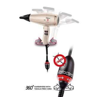 Чрезвычайно мощный и долговечный фен Valera Unlimited Pro 5.0 Salon Exclusive Gold Rose - это профессиональный фен с неограниченными возможностями. Он оснащен бесщеточным двигателем с электронным управлением Enduro BLDC. Фен Valera Unlimited Pro 5.0 Salon Exclusive Gold Rose имеет функцию ионизации - он оснащен генератором, который производит миллионы отрицательно заряженных ионов, помогающих поддерживать необходимый уровень увлажнения волос. Нагревательный элемент фена имеет волнообразную обмотку, что повышает его безопасность, а также это способствует более равномерному распределению воздушного потока. Фен имеет усовершенствованную технологию прохождения внутренних потоков воздуха Smart Airflow Technology, которая оптимизирует и сокращает путь внутреннего воздушного потока, уменьшая трение и нежелательное рассеивание потока. Это гарантирует максимальную производительность при минимальном уровне шума. А также фен имеет систему против запутывания и заламывания провода Rotocord. Она интегрирована в место соединения провода с корпусом фена. Получается, что провод крутится вокруг своей оси на 360 градусов, что препятствует его перекручиванию. Это обеспечивает больший комфорт в использовании фена и при его хранении. Две тончайшие насадки-концентратора с шириной разъема 60 и 75 мм позволят как быстро и качественно высушить волосы, так и выполнить точную укладку, закрепив результат и придав прическе дополнительный объем с помощью функции холодного обдува. Технические характеристики: