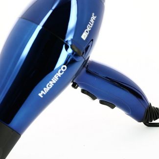 Профессиональный фен DEWAL Magnifico 03-007 Blue мощный и надежный инструмент. Встроенный генератор ионов создает поток отрицательно заряженных частиц, которые расщепляют молекулы воды на волосах на более мелкие частицы, существенно сокращая время сушки. Сопло удобно защелкивается на корпусе фена и не слетает во время работы, его положение легко поворачивать при необходимости. Необычное темно-синее зеркальное покрытие корпуса выгодно отличает этот профессиональный инструмент среди остальных профессиональных фенов. Фен DEWAL Magnifico 03-007 Blue - отражение Вашей Индивидуальности Яркие цвета фенов DEWAL поражают своим многообразием. В течение всего срока службы фена цвета не тускнеют и не стираются Технические характеристики: